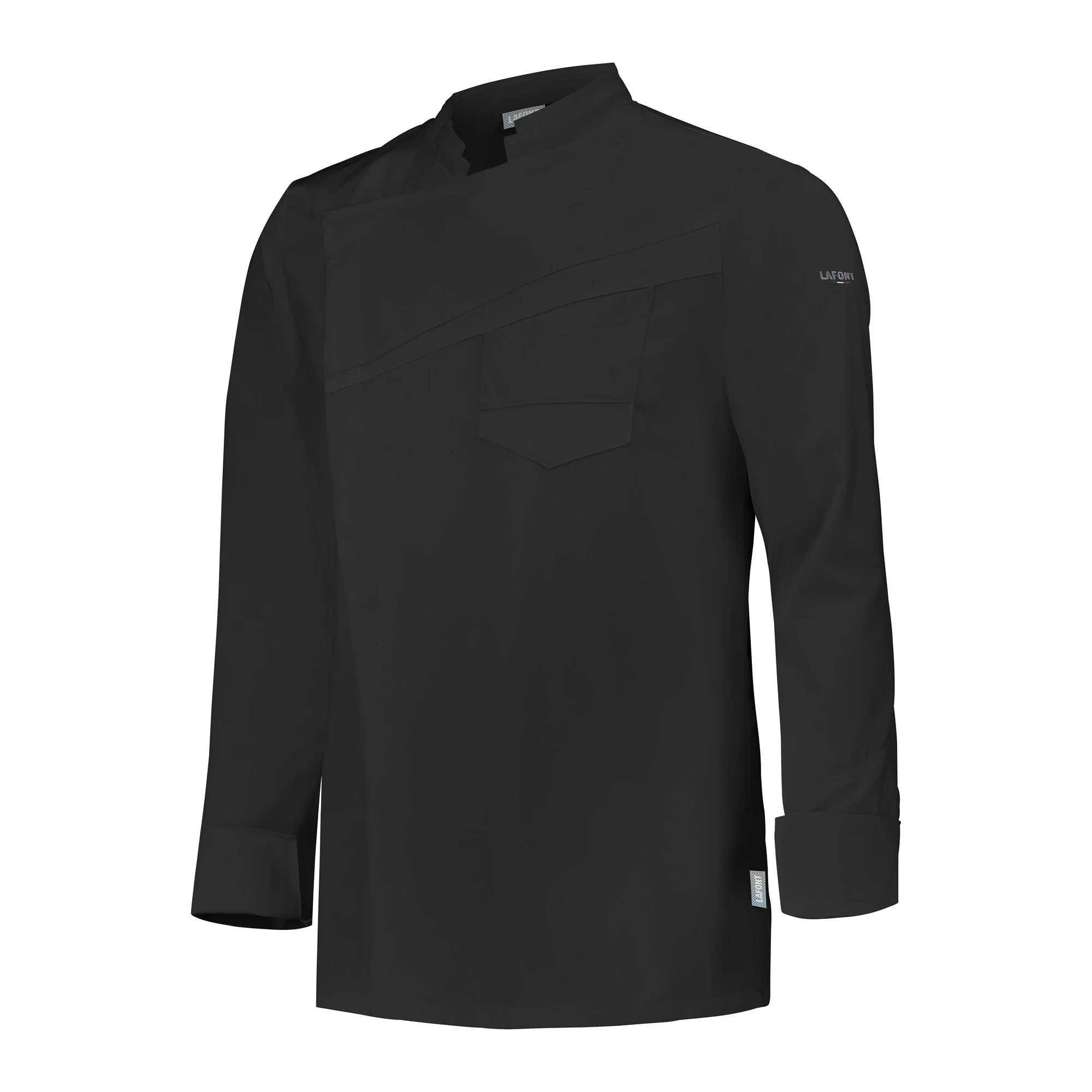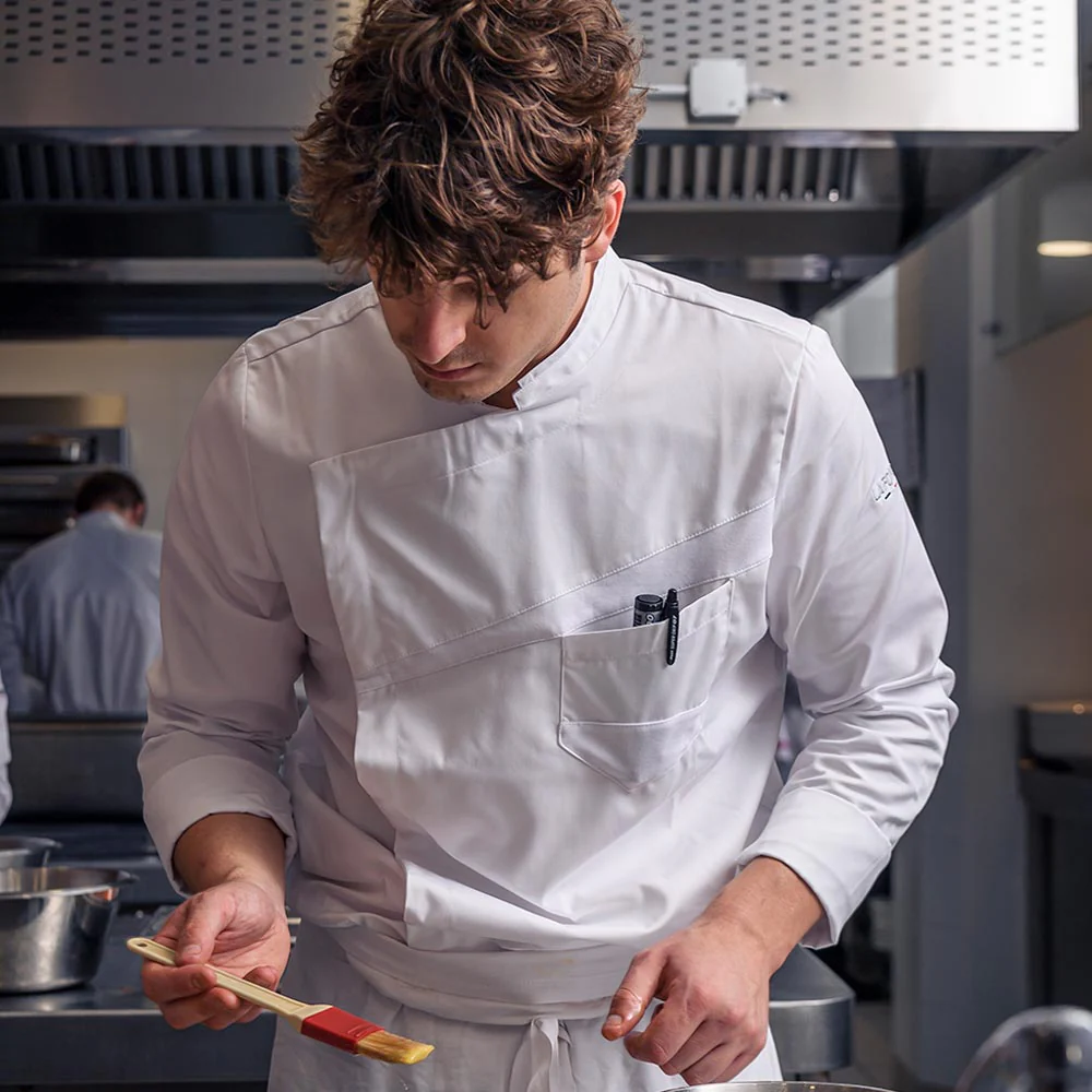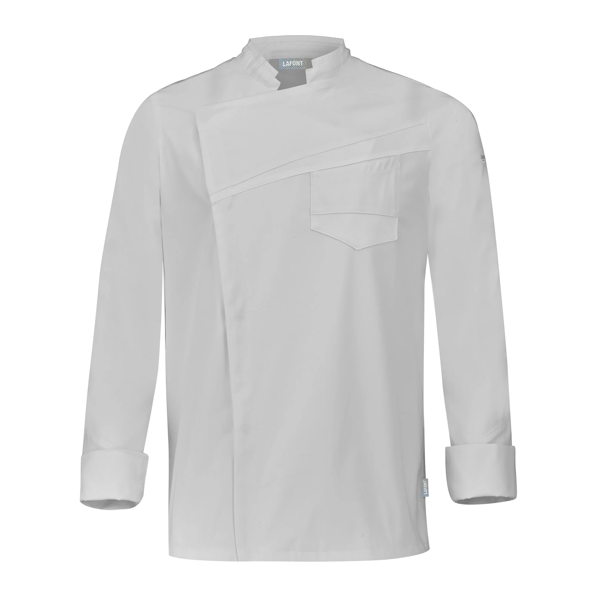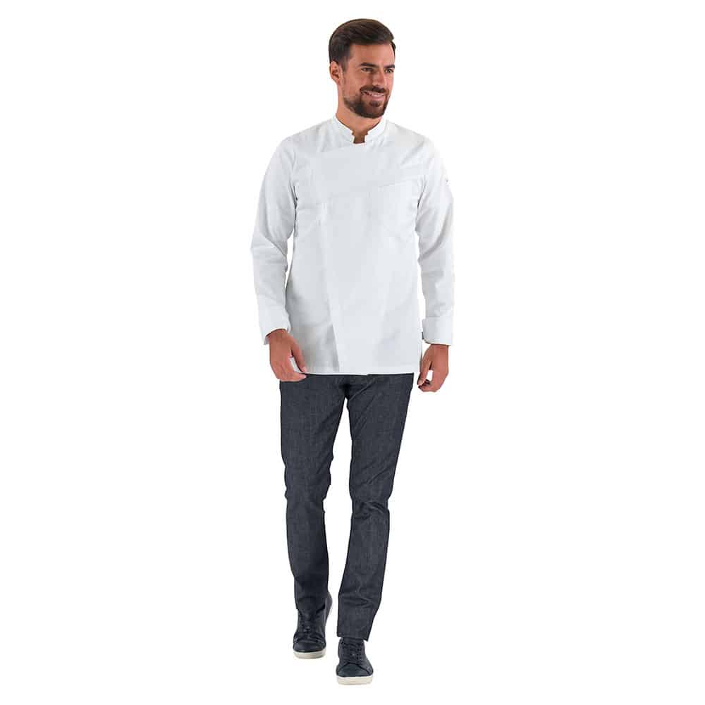 La veste de cuisine homme LEMONGRASS conçu pour accompagner les professionnels de la gastronomie dans leur bien-être et leur performance. Cette tenue de cuisine est composée d’un tissu Sergé 50 % coton 50 % polyester et d’une maille 79 % polyester 21 % coton. Les œillets d’aération brodés renforcent la respirabilité des empiècements en maille pour un confort de travail optimal. La veste de cuisine LEMONGRASS dispose également d’une fermeture asymétrique, d’un petit col officier et d’une poche poitrine plaquée. Existe en version manches courtes, et en version veste de cuisine femme NUTMEG.
