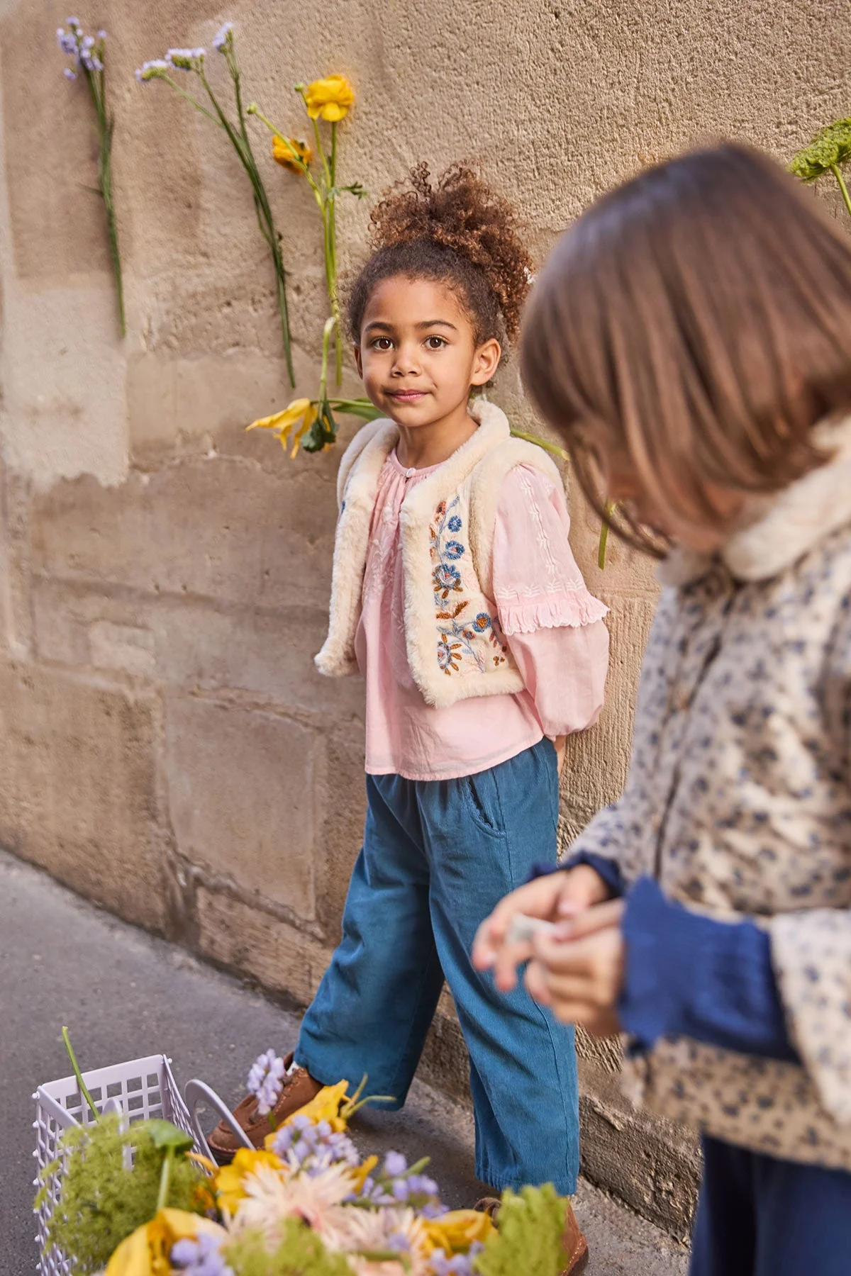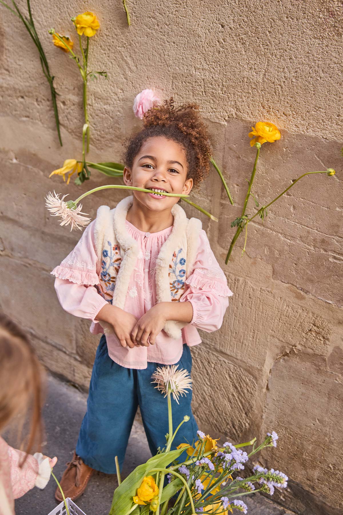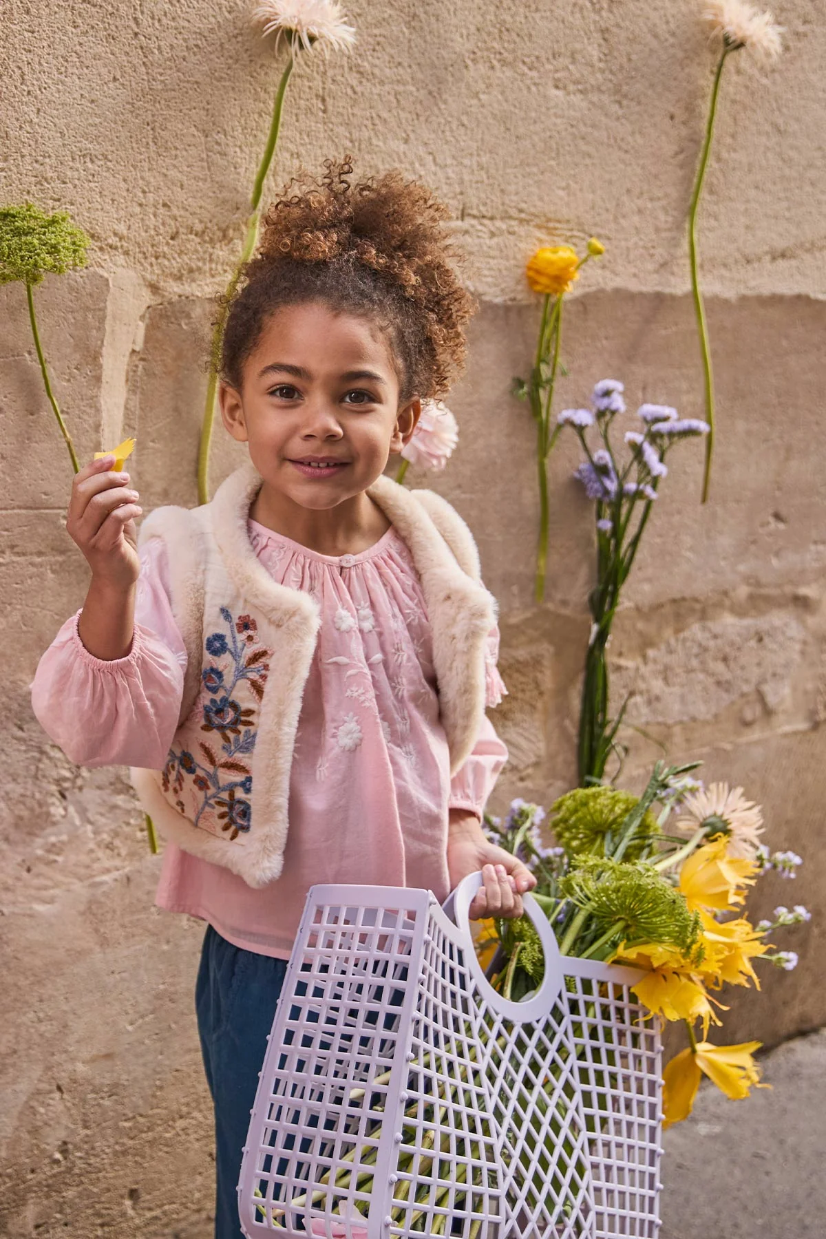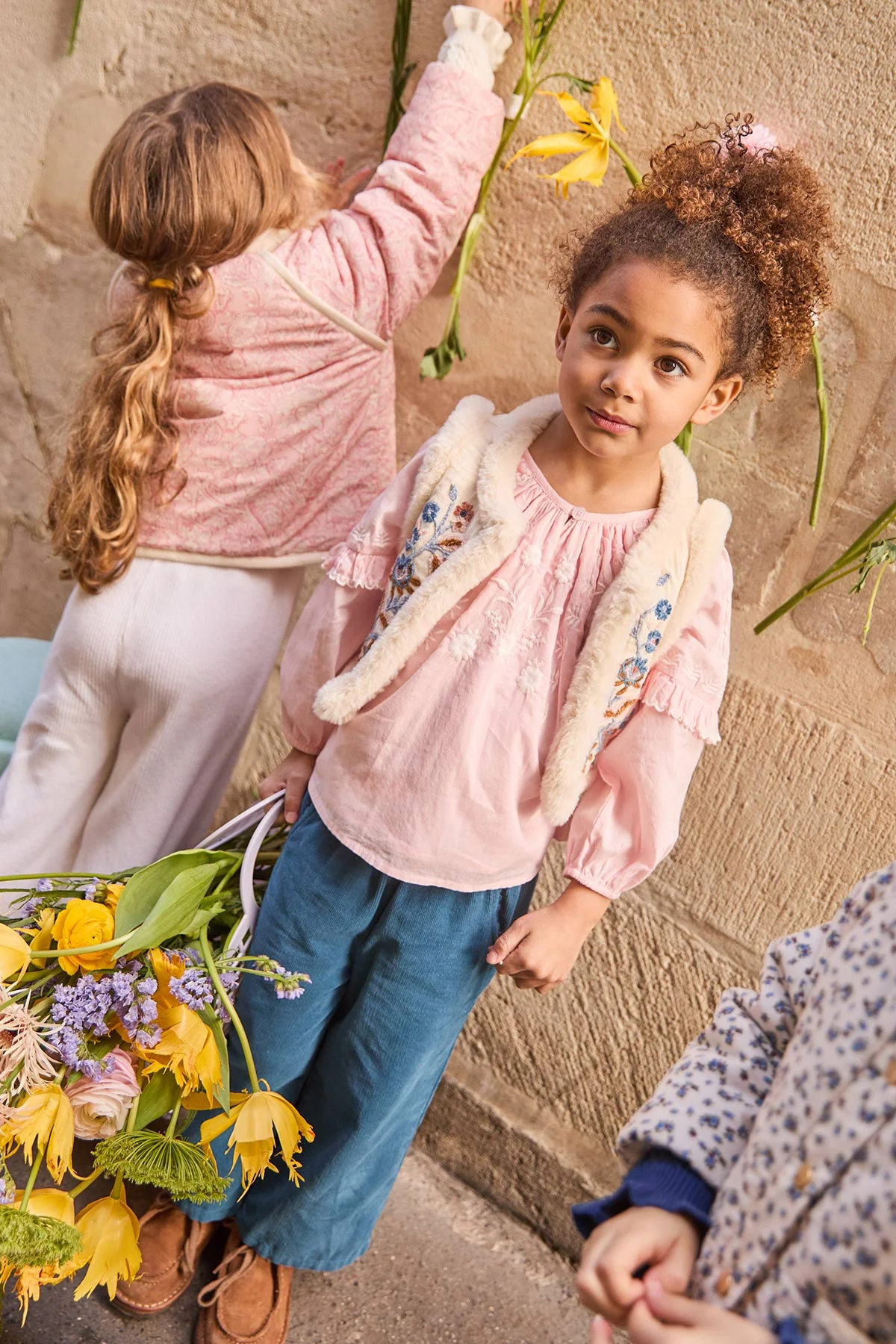 - Une face en gaze de coton brodée, et une face en fausse fourrure toute douce.
