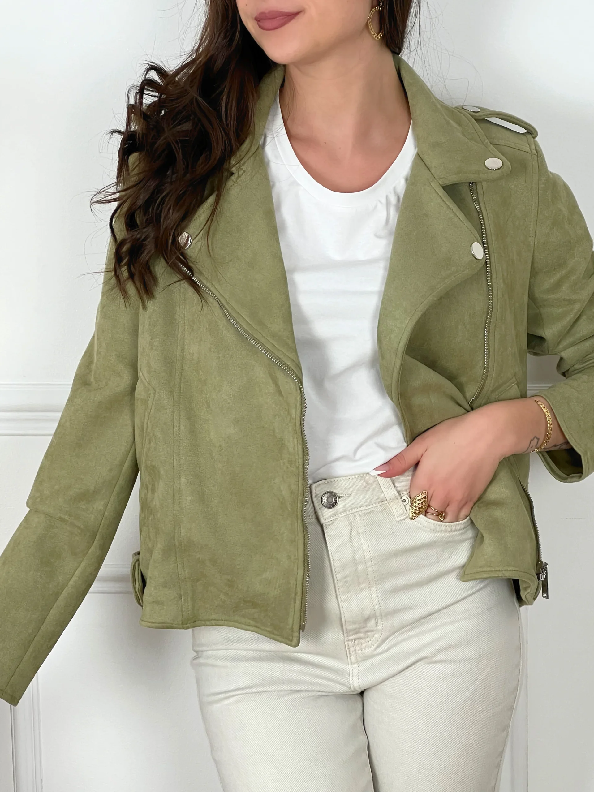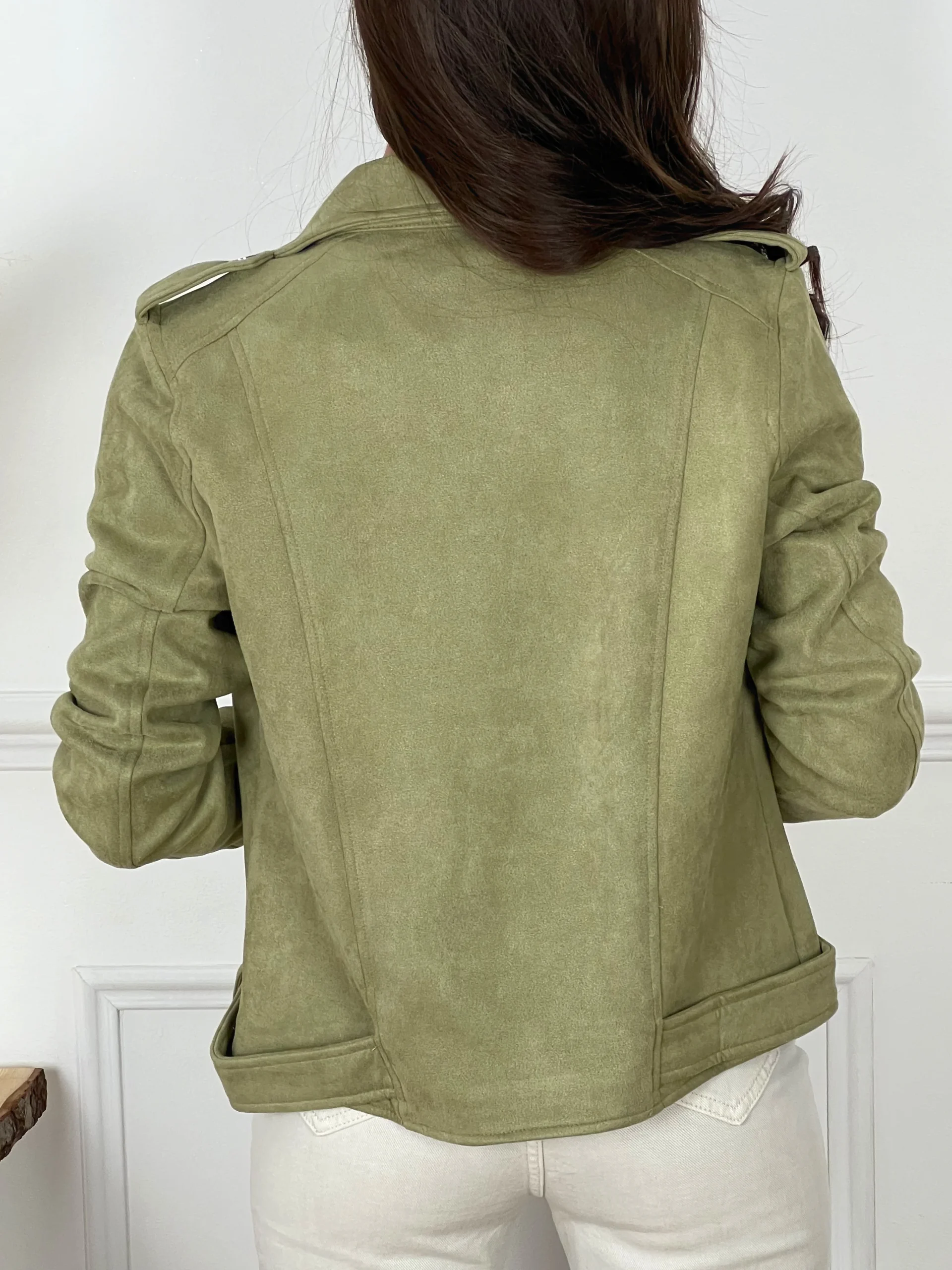 Cette veste style perfecto se décline en une multitudes de couleurs (rose, beige, vert, taupe), à accorder en fonction de vos envies et de votre style.