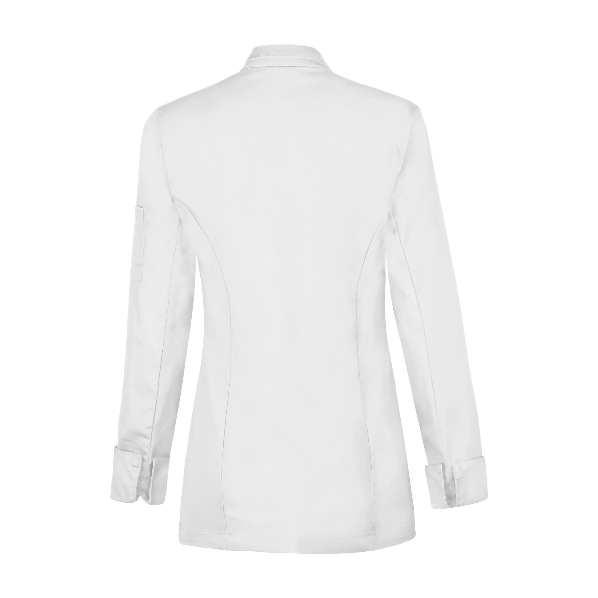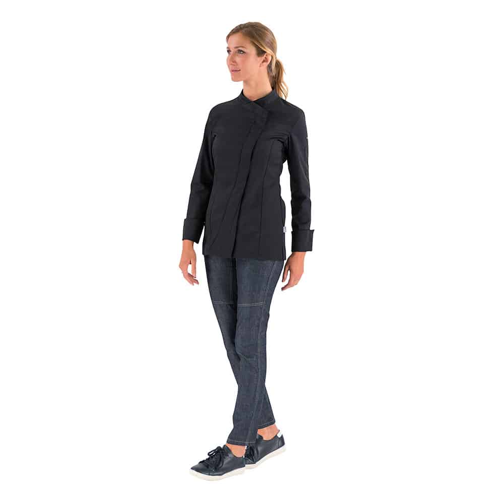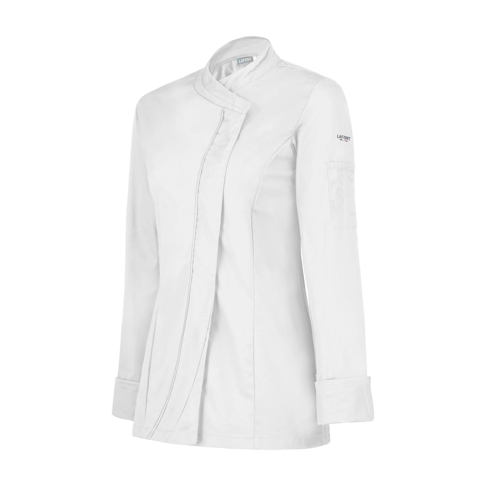 Choisissez une tenue de cuisine personnalisée avec ce modèle disponible en de nombreux coloris ! Chocolat et beige, rose ou anis, la veste de cuisine femme SAFFRON s’accordera aux couleurs de votre restaurant. Cette veste de cuisine manches longues affirme son look tendance aves ses empiècements contrastés et son double col avec twill en jacquard. Résistante et agréable à porter, elle est composée d’un tissu Sergé 50 % coton 50 % polyester. Cette veste professionnelle de cuisine est dotée d’une fermeture croisée à grippers cachés et de fentes de côtés renforcées. Pour une meilleure respirabilité, des œillets d’aération sont disposés sous les bras. Cette veste de cuisiner femme intègre également une poche à stylo et des bas de manches fendus pour libérer les gestes professionnels au quotidien.