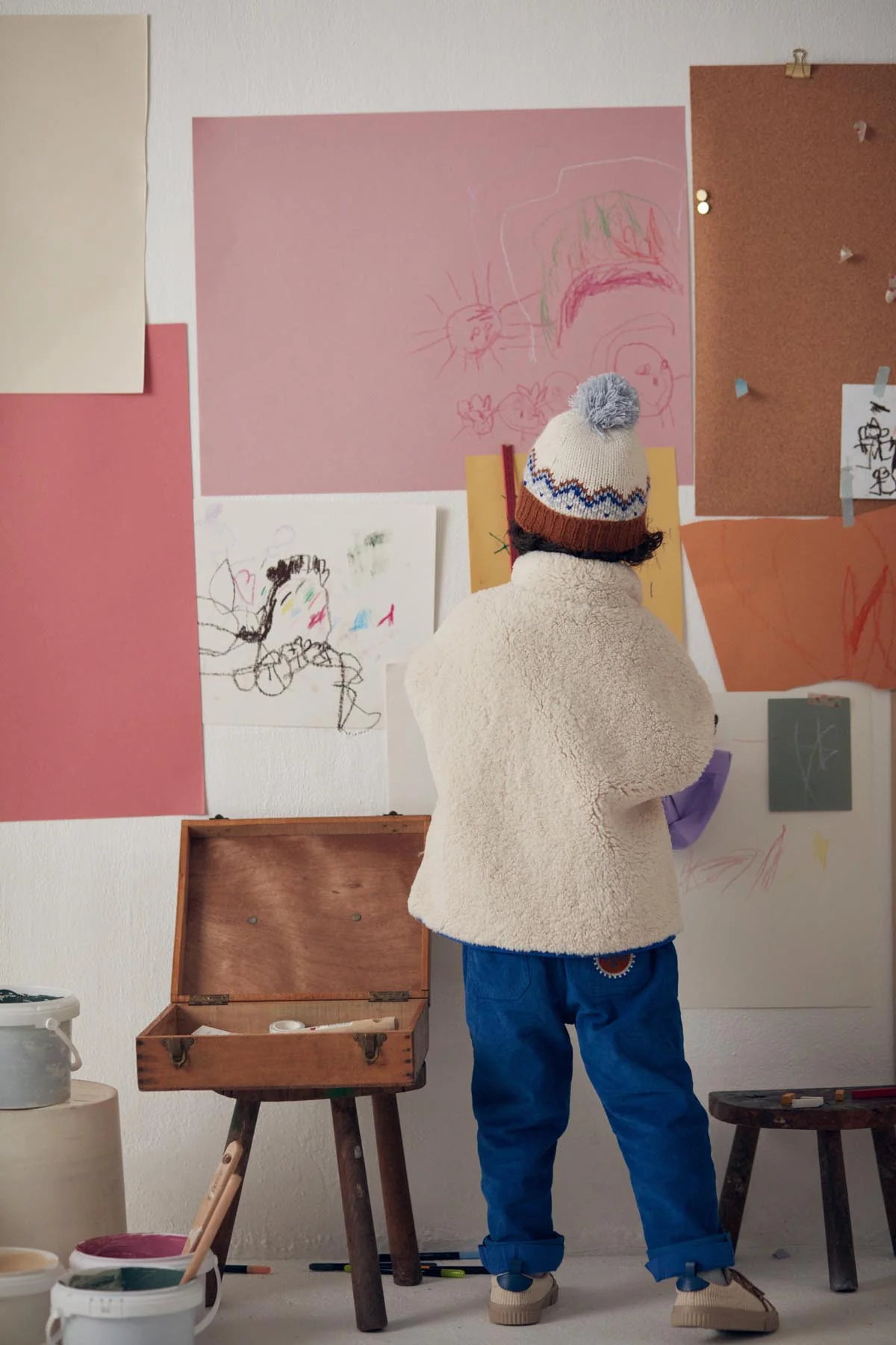 Les garçons aussi ont le droit à leur veste sans manches ! Avec son sherpa, ses poches contrastées et ses broderies poétiques, c’est une pièce singulière à l’esprit décontracté pour ceux qui veulent rayonner de leur propre style.
