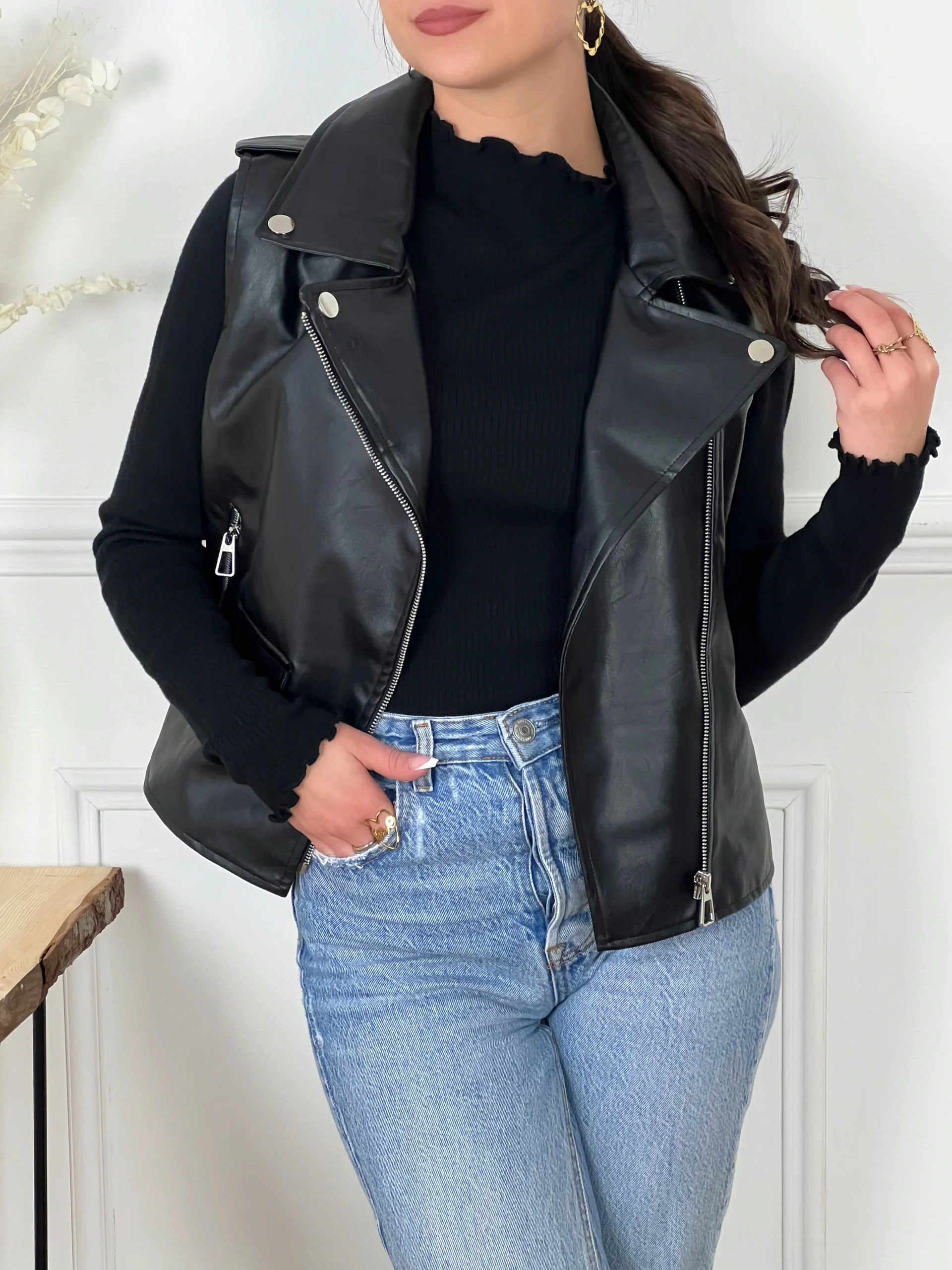 Cette veste effet simili peut être associé avec énormément de tenues.