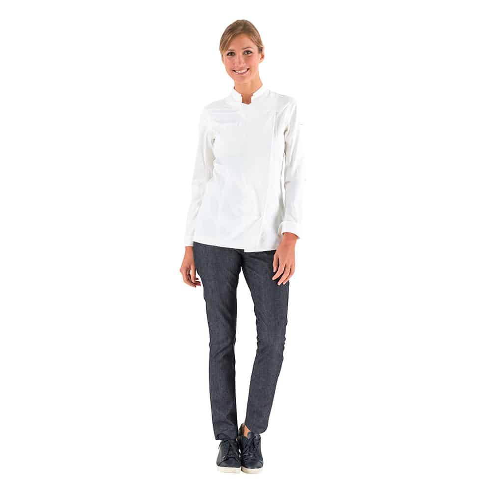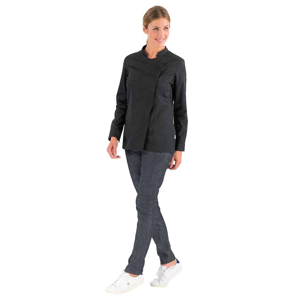 Mettez de la technique dans votre cuisine avec cette veste de travail de haute qualité. La veste de cuisine femme Solanum a été conçue avec le premier tissu retardateur de flamme composé de 68 % modacrylique 29 % modal 3 % eol. En plus d’être antitache et antibactérien, ce textile mis au point avec TDV Industries procure une sécurité optimale durant tout le service et pendant du coup de feu. La veste de cuisine professionnelle Solanum possède également une fermeture asymétrique et un patronage exclusif Ergo Cut® sans coutures pour plus de confort. Pour davantage de respirabilité et d’aisance de mouvement, des empiècements en maille sont disposés sous les bras et dans le dos. Cette veste de cuisine manche longue se décline en noir et blanc, et au masculin avec le modèle Cynara.